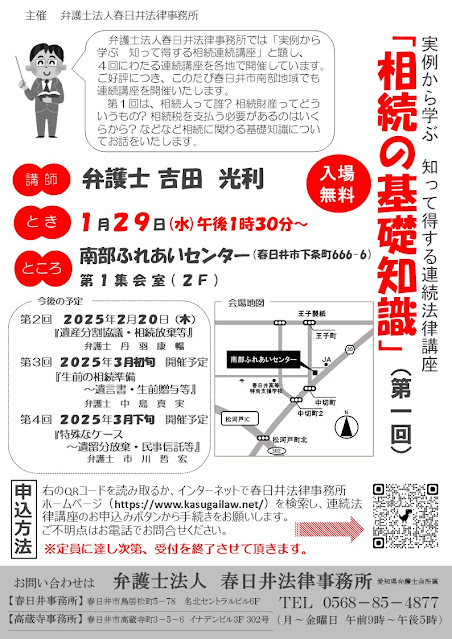 下記の日程で相続連続講座 第1回「相続の基礎知識」を開催致します!